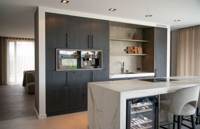 Mensen komen vaak bij ons binnen met een idee, folder of tekening. Ze hebben dan al een keuken in gedachten, al dan niet compleet met alle mogelijke inbouwapparatuur en de laatste moderne snufjes. Op basis van die wensen en ideeën gaan we om de tafel, bekijken we rustig de mogelijkheden en adviseren over praktische en esthetische oplossingen. We ontwerpen, geven een 3D-tekening mee en gaan op locatie inmeten. Uiteindelijk produceren we de keuken of het interieur volledig op maat, want er vertrekt niet één dezelfde keuken of kast uit onze werkplaats.